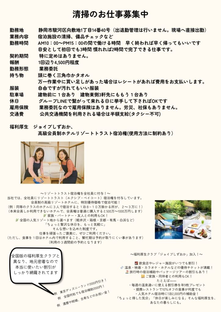 お仕事募集お小遣い民泊求人清掃